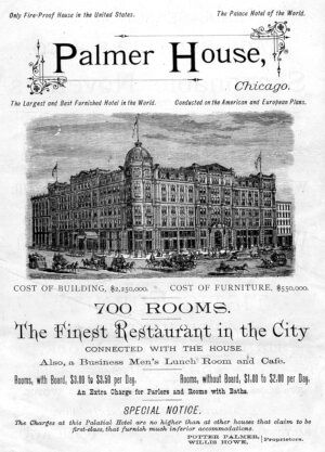 Potter and Bertha Palmer were among Chicago’s most influential power couples, and their legacy stretched all the way to Venice, Florida. Potter first built his fortune in retail, founding P. Palmer & Company before selling it to Marshall Field and Levi Leiter—laying the foundation for Marshall Field’s. He then turned to real estate, transforming State Street into Chicago’s main retail corridor and developing the Gold Coast along Lake Shore Drive, where the Palmers built their lavish mansion. After the Great Chicago Fire of 1871, Potter doubled down on rebuilding, most famously with the Palmer House Hotel, originally a wedding gift for Bertha. Rebuilt after the fire, the Palmer House became a Chicago landmark and still operates today as the Palmer House Hilton.
